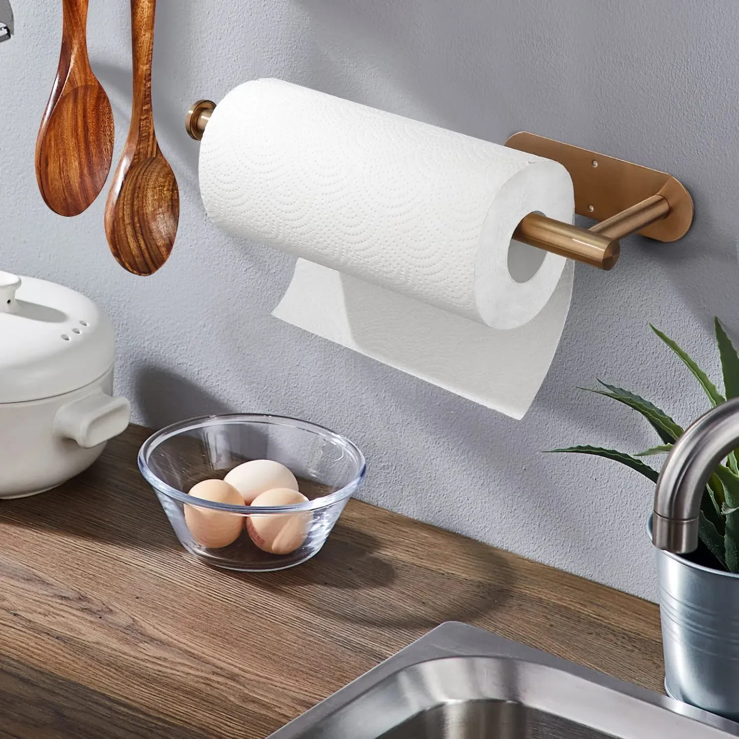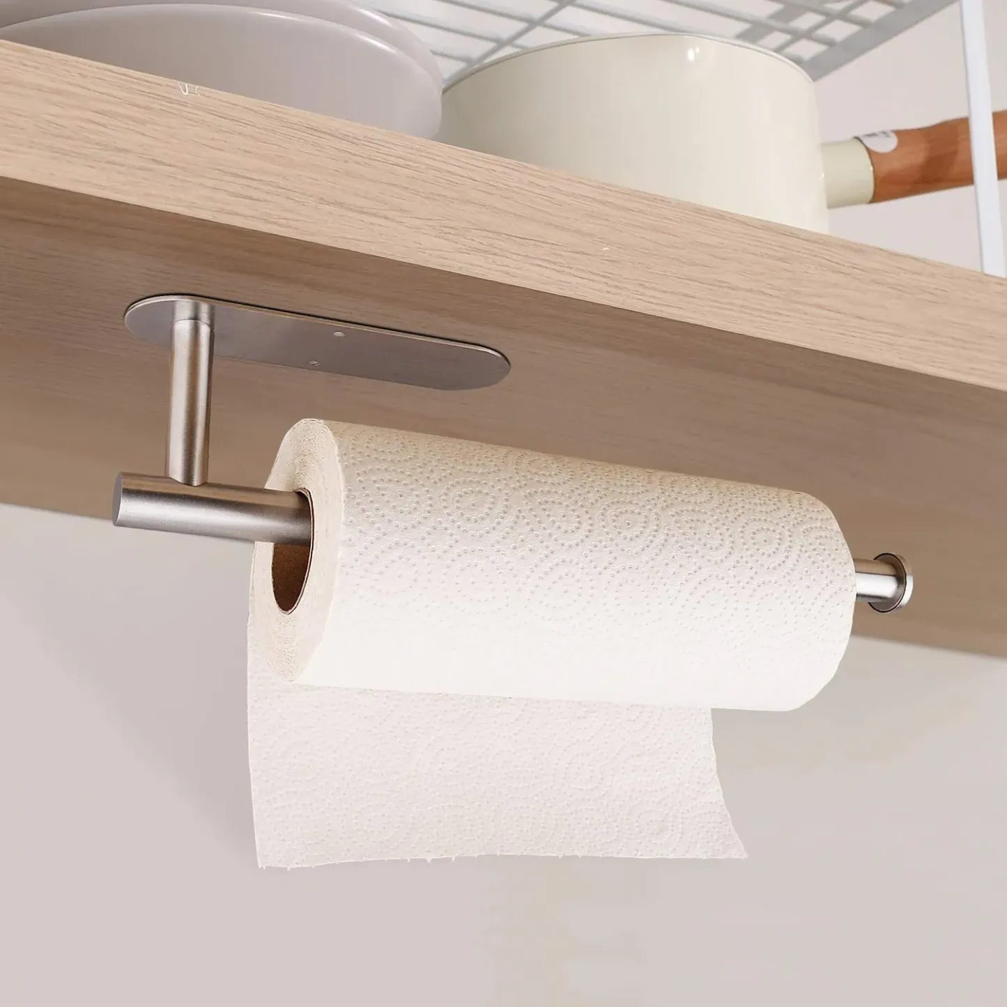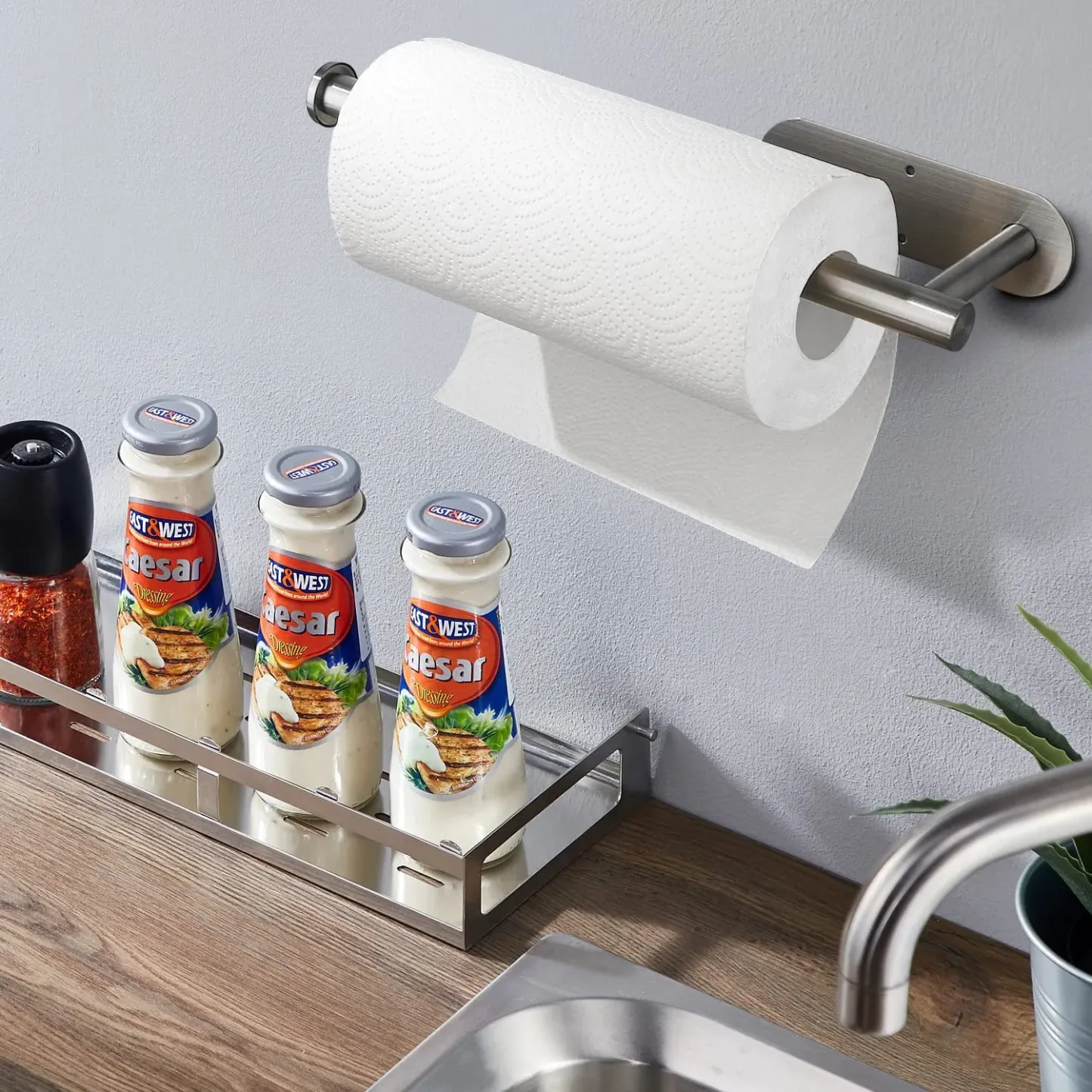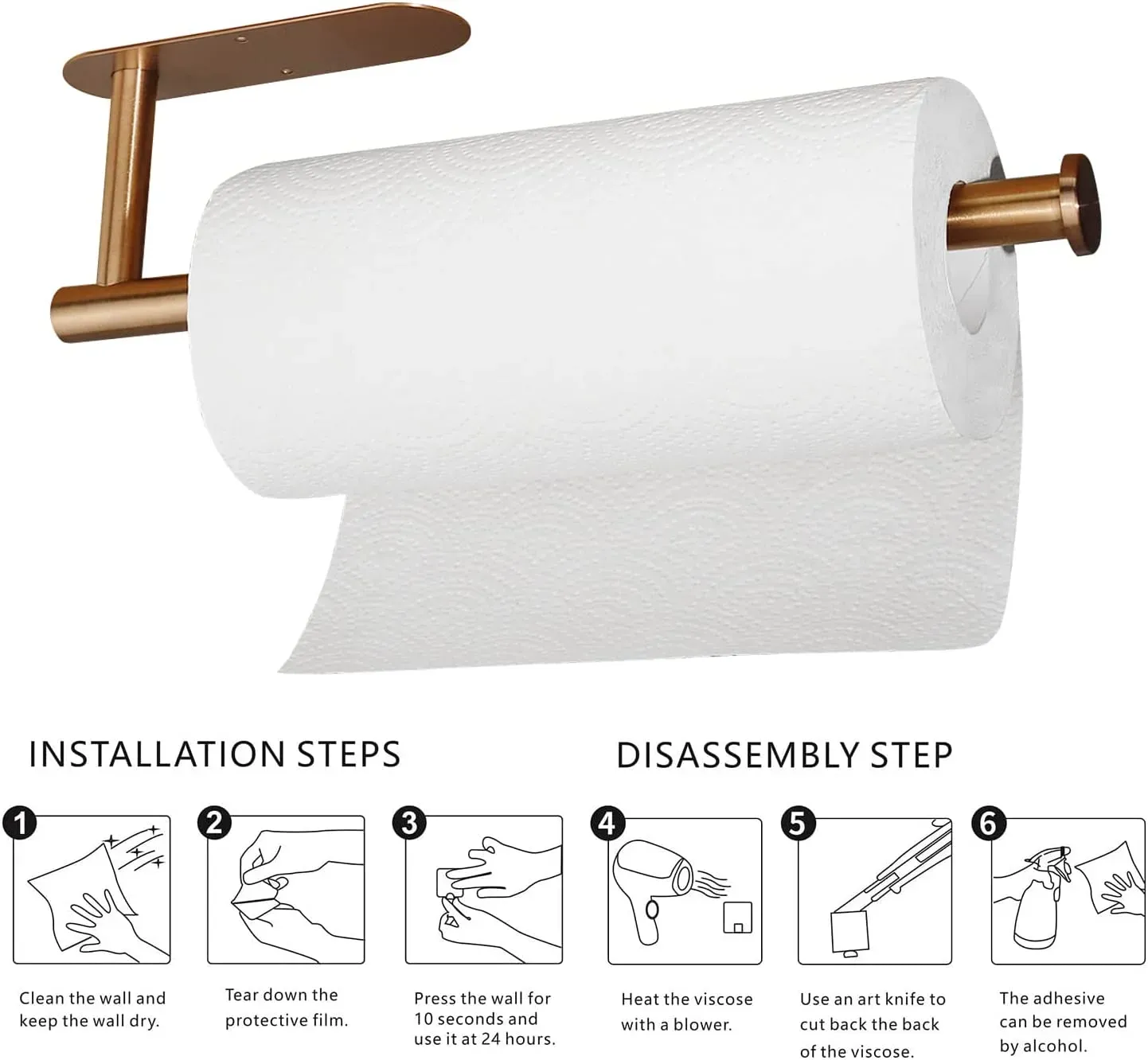 [Characteristic]: Paper towel holder under cabinet mount:Paper towel holder constructed of SUS 304 Stainless Steel,Strong and not easily deformed,Waterproof and Rustproof.It has good load-bearing and stickiness, and it is not easy to fall off