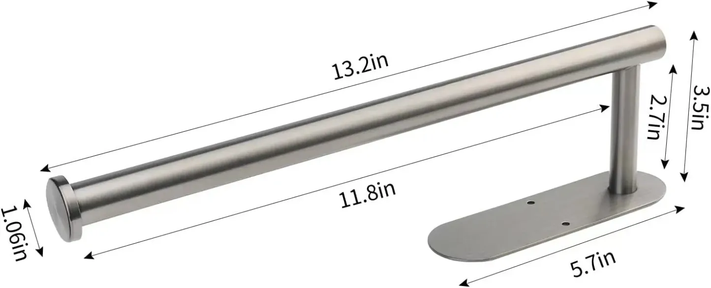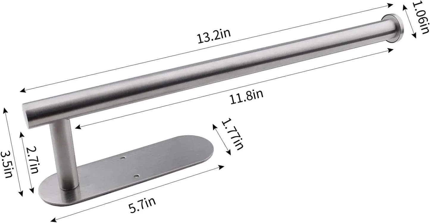 [Size and tips]:The Paper Towel Bar Length: 13 2/5 inch and is not suitable for wall paper or painted wall.